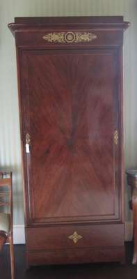 FRENCH EMPIRE STYLE GILT METAL MOUNTED MAHOGANY ARMOIRE