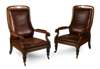 MARITIME INTEREST: PAIR OF EARLY VICTORIAN OAK FRAMED AND LEATHER UPHOLSTERED LIBRARY ARMCHAIRS