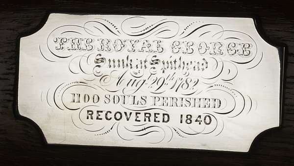 HMS Royal George was a 100-gun first-rate ship-of-the-line of the Royal Navy, built at Woolwich Dockyard and launched on 18 February 1756. The largest warship in the world at the time of launching, she saw service during the Seven Years' War, as Admiral Sir Edward Hawke's flagship at the Battle of Quiberon Bay and later taking part in the Battle of Cape St Vincent. She sank whilst undergoing routine maintenance work, anchored off Portsmouth on 29 August 1782 with the loss of more than 1,000 lives - one of the most serious maritime losses to occur in British waters. In 1840 the broken wreckage was destroyed by the Royal Engineers in a huge controlled explosion that shattered windows as far away as Portsmouth and Gosport. Several of the salvaged bronze cannon were melted down to form the base of Nelson's column in Trafalgar Square. Timber from the ship was also used to make the billiard table for the North Wing of Burghley House, Lincolnshire.