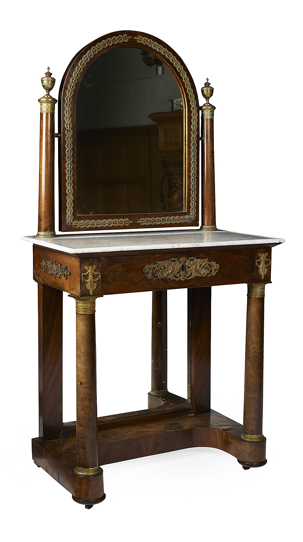 FRENCH EMPIRE STYLE GILT METAL MOUNTED MAHOGANY COIFFEUSE