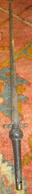 with chequered ebony grip turned quillions, double-edged long slender blade
