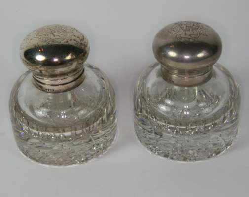 PAIR OF VICTORIAN SILVER-MOUNTED CUT GLASS INKWELLS