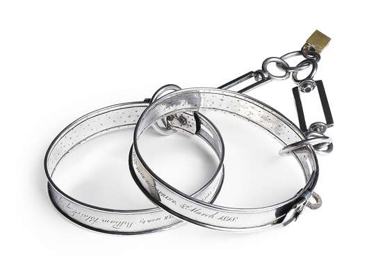 This pair are among the plainer in style, due to the earlier date and the fact they were retained by the winner; rather than some of the later examples which were represented and re-engraved each year. The fact the pair still survives with the original chains is also unusual.
