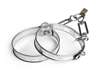 11cm diameter, 2cm high, overall length 26.5cm, combined weight 8oz