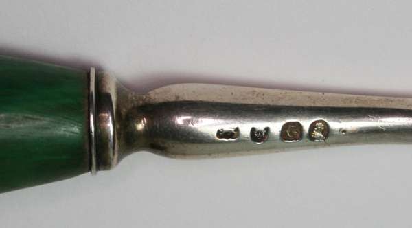 with baluster green stained handle with simple stem an shovel scoop