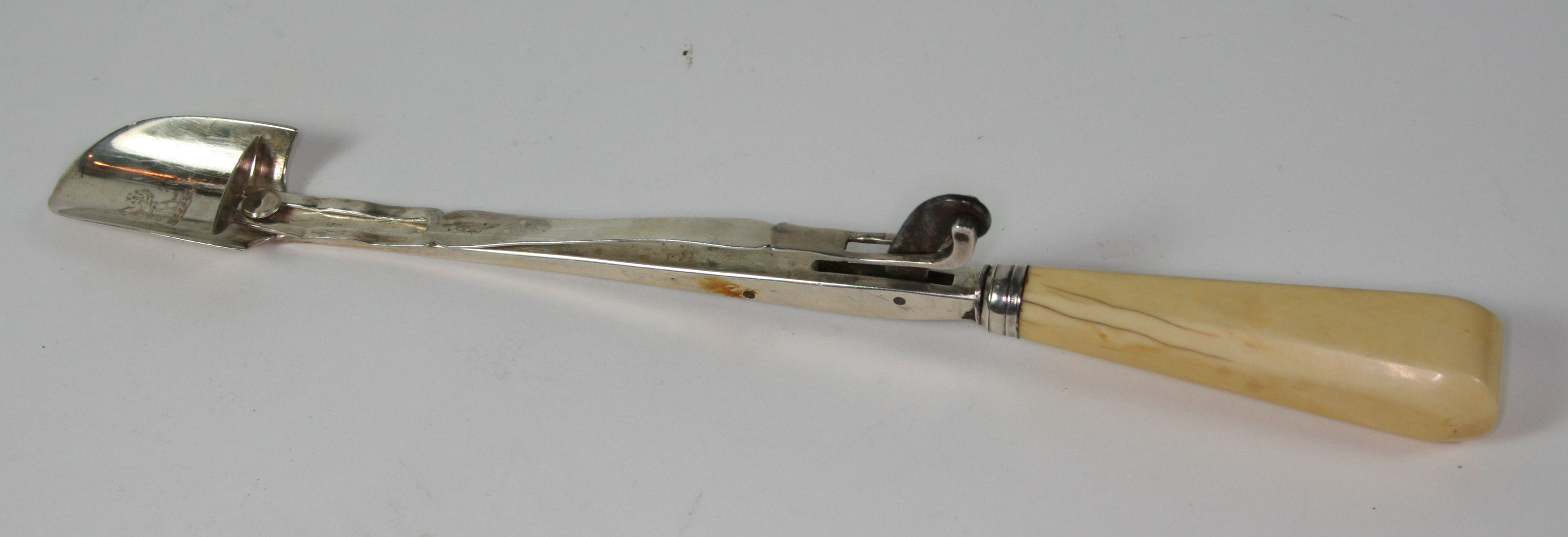 the silver stem and scoop with hinged pusher, and simple ivory handle