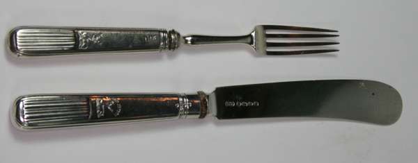 GROUP OF SILVER TABLE KNIVES AND FRUIT KNIVES AND FORKS