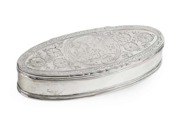 DUTCH SILVER NAVETTE SHAPED TOBACCO BOX