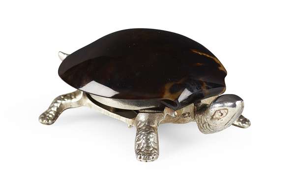modelled as a tortoise, with faux tortoiseshell body, the base with engraved registration number and diamond to the plated mounts