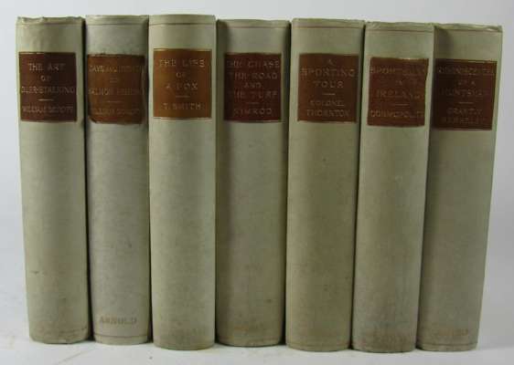 The sportsman's library. London: Edward Arnold, 1897-98. New edition, 7 volumes, colour frontispieces, contemporary half vellum gilt, morocco labels, some peeling to labels, interiors clean (7)
