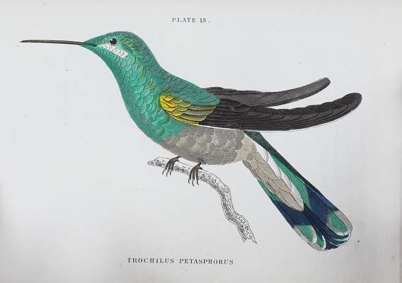 The natural history of humming-birds. Edinburgh: W.H. Lizars, 1833. 8vo, 2 volumes, portrait frontispieces, hand coloured vignette titles, hand coloured plates, contemporary half calf, worn, boards loose, interiors clean (2)