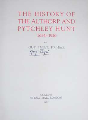 History of the Althorp and Pythchley Hunt. London, 1937. 4to, signed by the author, frontispiece, original half vellum gilt, dustwrapper loose; and 6 other sporting volumes (7)