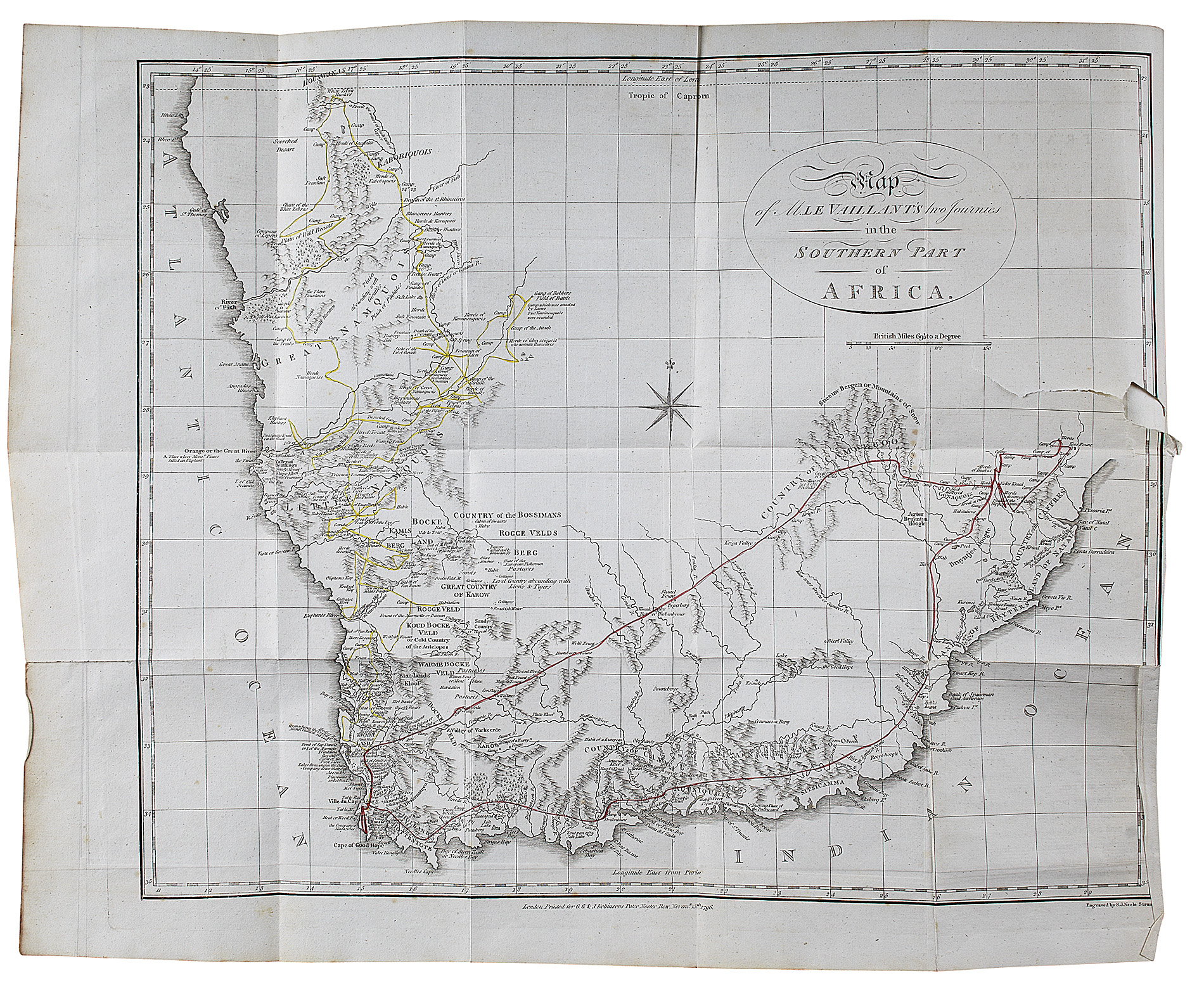 New travels into the interior parts of Africa. London, 1796. 8vo, 3 volumes, half titles, folding map, 22 plates [some folding], contemporary calf gilt, rubbed at backstrips (3)