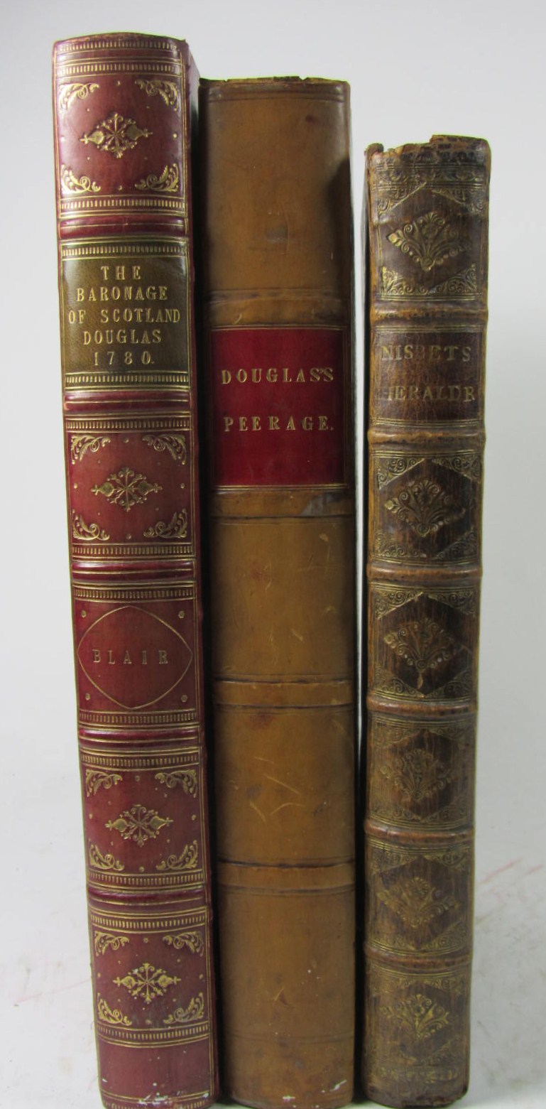 Baronage of Scotland, 1780. Folio, red half calf; Douglas, Sir Robert. Peerage of Scotland. Folio, 19th century half calf, some plates worn and repaired; Nisbet, A. A system of heraldry. 1722. Folio, calf, a few plates frayed (3)