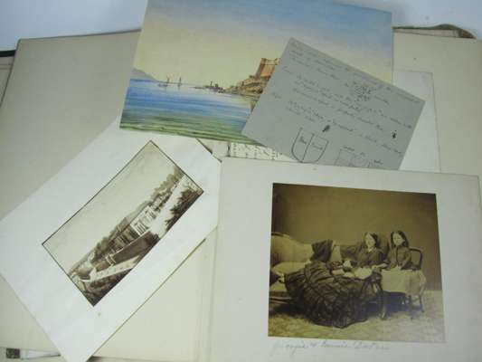 Five folio albums of engravings, one with several watercolours of Italy, and photographs of the Blair family, c. 1860's