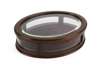 EDWARDIAN MAHOGANY AND INLAID GLAZED OVAL BIJOUTERIE CASE