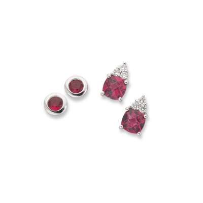 Two pairs of 18ct white gold ruby and diamond earrings