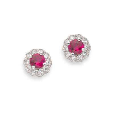 A pair of 18ct white gold ruby and diamond cluster earrings