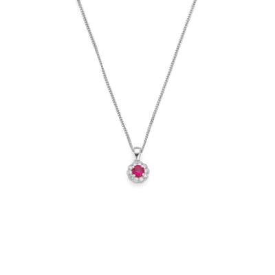 An 18ct white gold ruby and diamond cluster pendant necklace