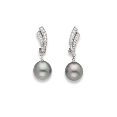 A pair of Tahitian pearl and diamond earrings