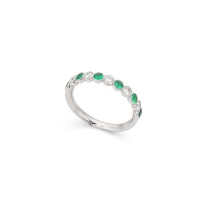 A platinum emerald and diamond half-eternity ring