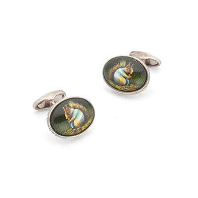 A pair of silver and enamel 'squirrel' cufflinks