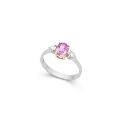 A platinum pink sapphire and diamond ring