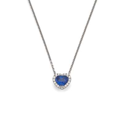 An 18ct white gold sapphire and diamond pendant necklace