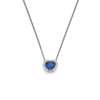 Claw-set with a heart-shaped sapphire, weighing approximately 1.29cts, in a border of round brilliant-cut diamonds, to a white gold trace-link chain, UK hallmarks