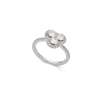 Claw-set with a round brilliant-cut diamond, the border and shoulders set with small round brilliant-cut diamonds, stamped Au750