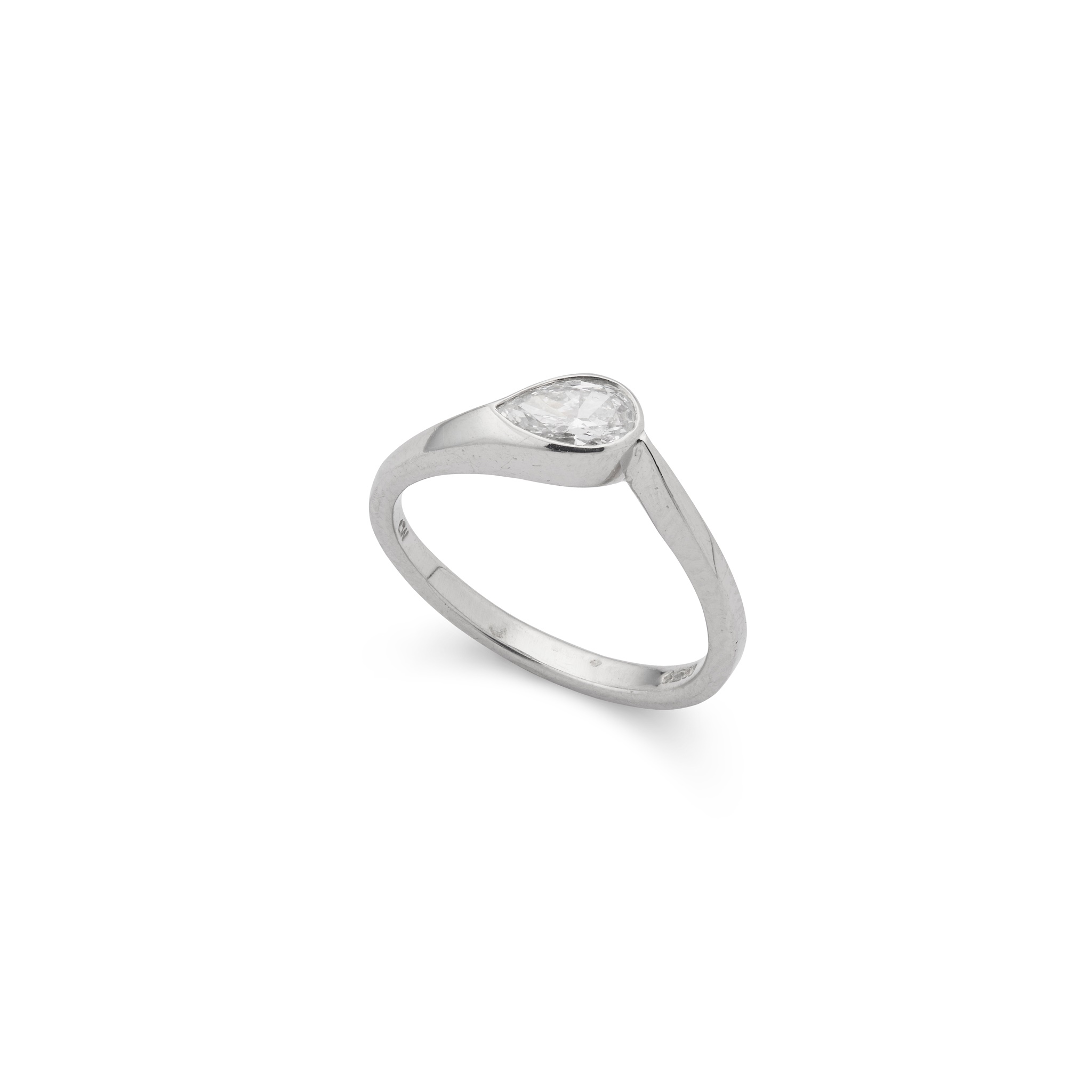 Collet-set with a pear-shaped diamond, weighing approximately 0.40cts, UK hallmarks