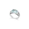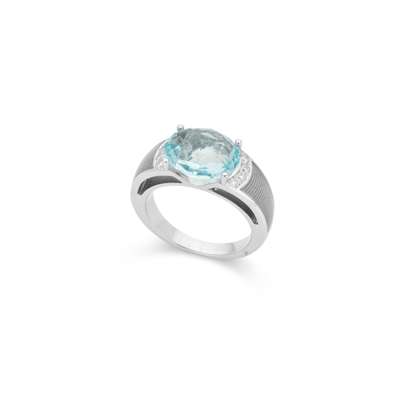 Claw-set with an oval mixed-cut aquamarine, each shoulder set with four round brilliant-cut diamonds and grey-blue guilloché enamel detail, signed, numbered 12/300, stamped Au750
