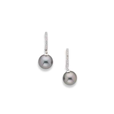 A pair of 18ct white gold Tahitian pearl and diamond earrings †