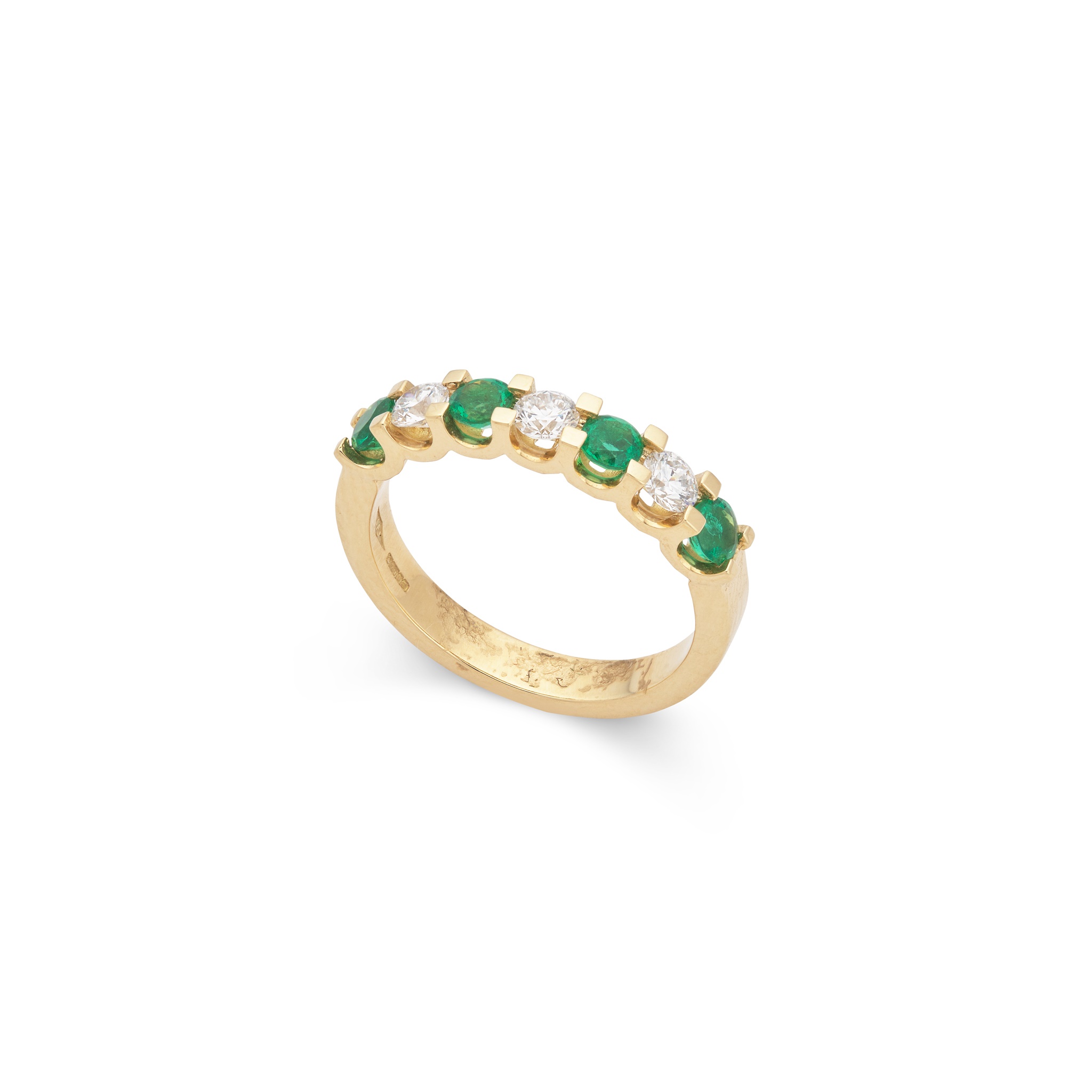 An 18ct yellow gold emerald and diamond half-eternity ring †