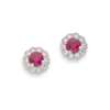 Each claw-set with a round-cut ruby in a border of small round brilliant-cut diamonds, post and butterfly fittings, UK hallmarks