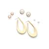 Including a pair of 9ct gold large oval curved-hoop earrings; a pair of 9ct gold cultured pearl earrings in a rope-twist border; a pair of pearl stud earrings, stamped 9ct; a pair of mabé pearl stud earrings, stamped 375 (4)