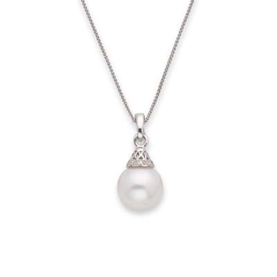 An 18ct white gold South Sea pearl and diamond pendant necklace †