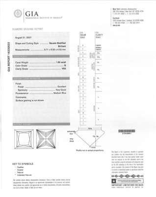 Accompanied by a GIA report no. 16220022, dated 21st April 2007, stating that the principal diamond, weighing 1.02cts, is G colour, VS2 clarity, with medium fluorescence