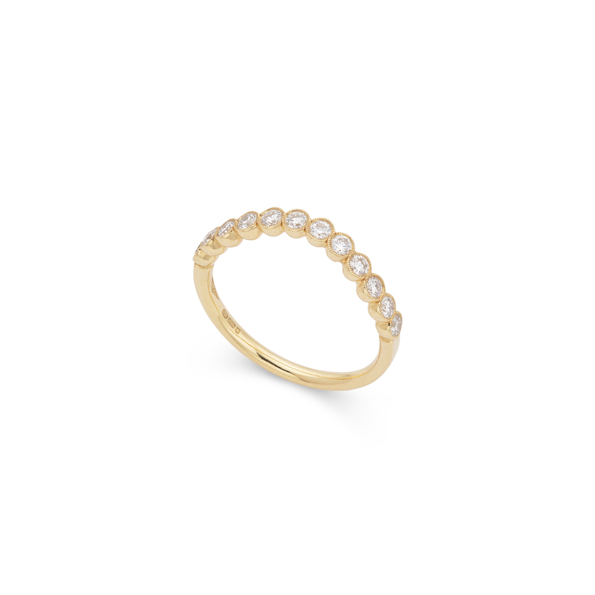 Millegrain-set with twelve round brilliant-cut diamonds, UK hallmarks