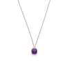Claw-set with a mixed cushion-cut amethyst and three small round brilliant-cut diamonds, to an 18ct gold trace-link chain, UK hallmarks