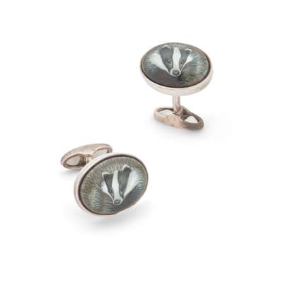 A pair of silver and enamel 'badger' cufflinks †