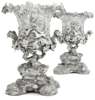 These wine coolers are possibly inspired by the great Parisian goldsmiths, Thomas Germain and Jacques Roettiers. But these are very far from copies. The way in which the krater-like vase has been completely enveloped by the living vine could only be Victorian but the craggy rocky base which supports the vase reinvents a Roettiers centrepiece of the 1740s, while the vine handles recall those of a Germain wine cooler of 1727.