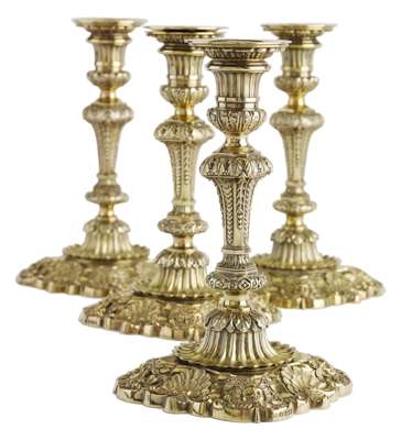 A set of four exceptional George III silver-gilt candlesticks