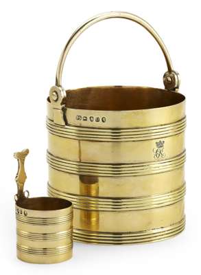 A George III Royal silver-gilt cream pail and ladle