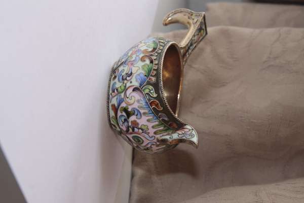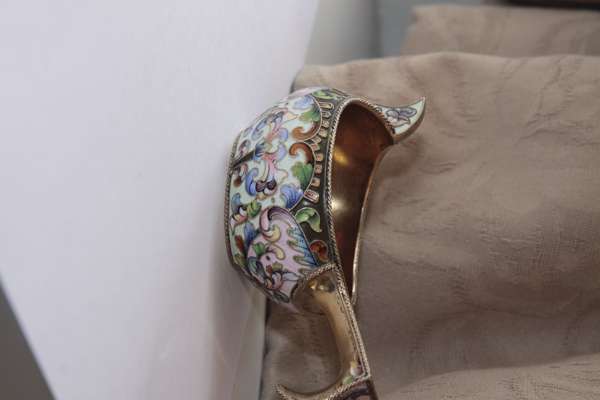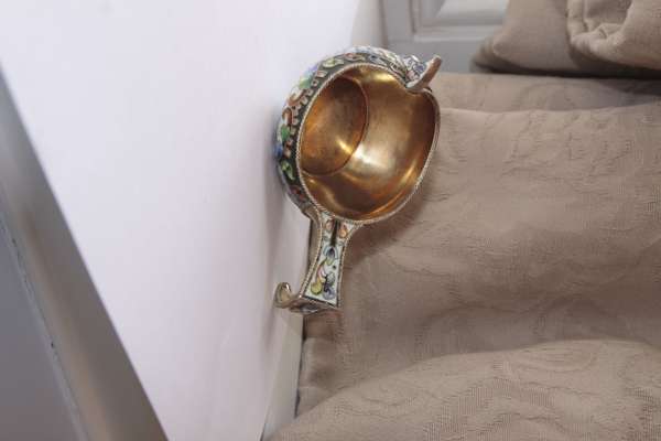 A Russian small silver-gilt and cloisonné enamel kovsch