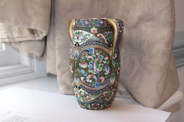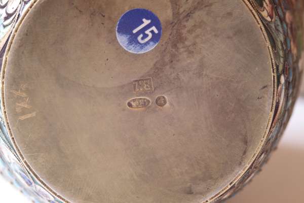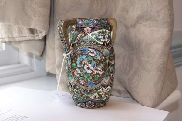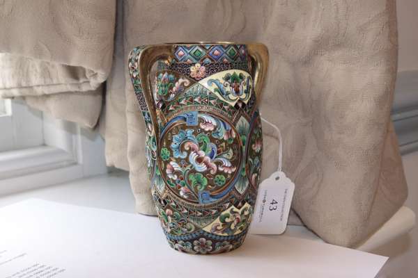 A Russian silver-gilt and shaded cloisonné enamel two-handled vase