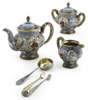 A Russian five-piece silver-gilt and shaded cloisonné enamel tea-set