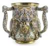 A Russian silver-gilt and shaded cloisonné enamel three handled loving-cup (‘Kriushonnitsa’)