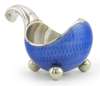 the bowl enamelled in translucent blue on wavy engine-turning, on three silver-gilt ball feet, curved handle, workmaster’s initials indistinct, scratched inventory number 15475