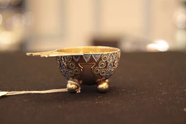Fabergé silver-gilt and shaded cloisonné enamel charka